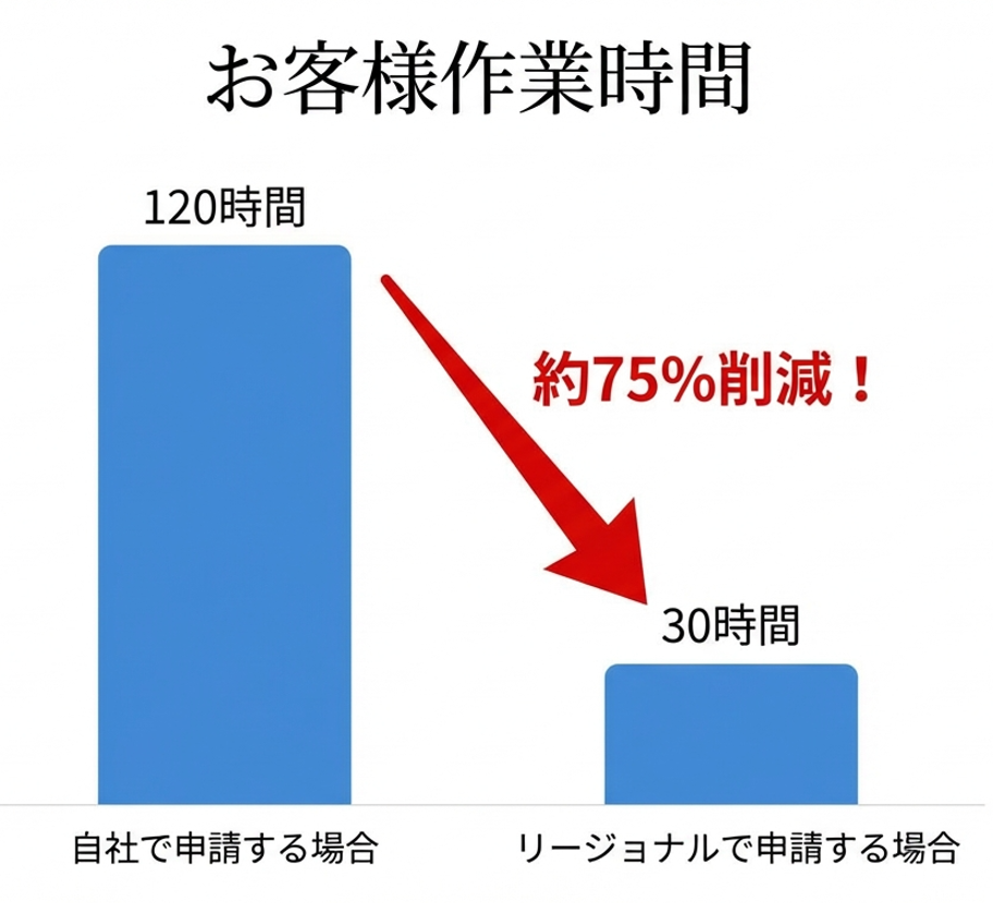その点、リージョナルでは100件近くの実績から、効率的に書類を準備していくことが可能であり、お客様の人件費を考慮してもメリットがあります。